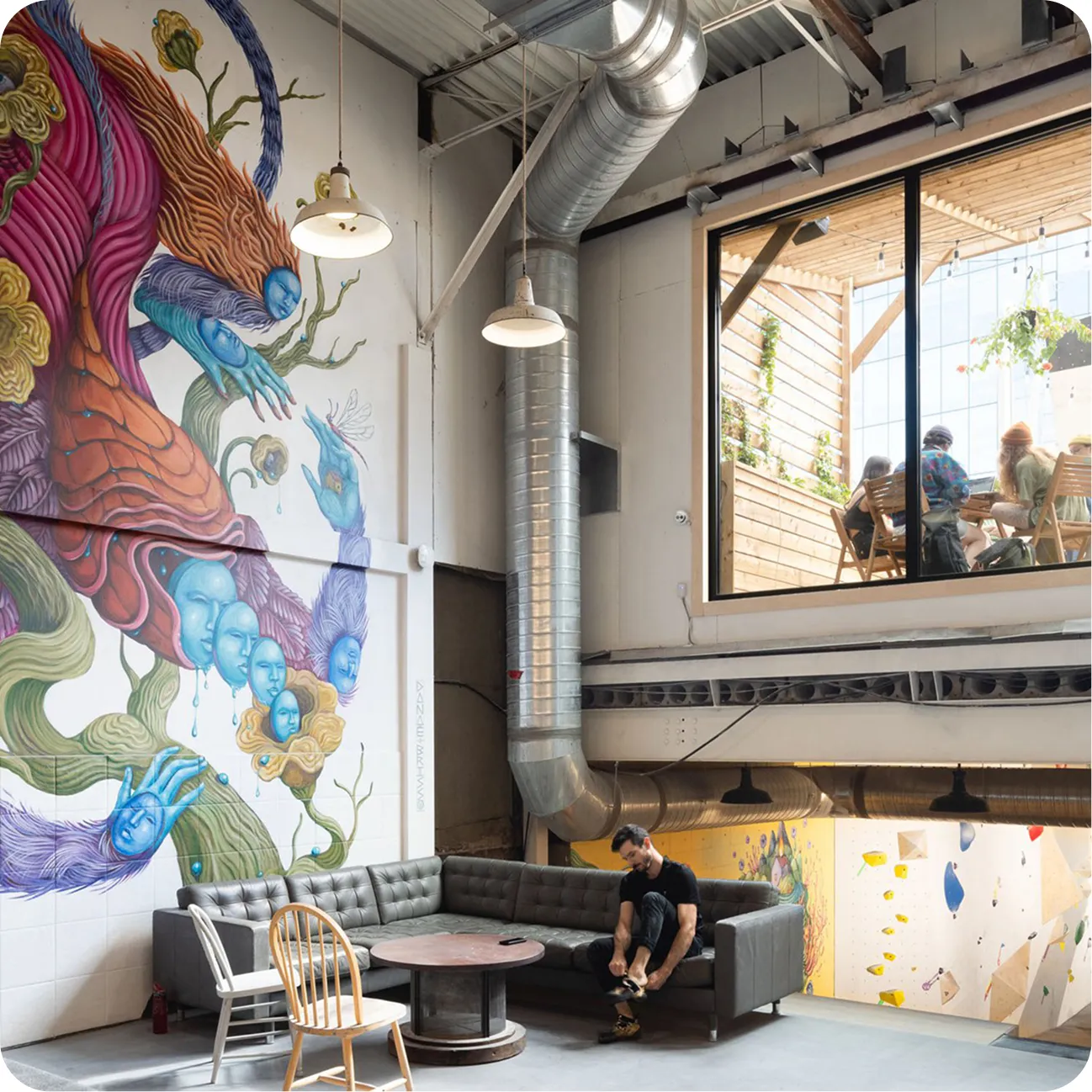 Café Bloc, c’est cet esprit de communauté qui rassemble. C’est un espace amical et inclusif, permettant à la fois le dépassement de soi et le chillage, en bonne compagnie. C’est un endroit qui est teinté de l’expérience de vie de ses créateurs, qui ont voulu recréer l’ambiance que l’on retrouve au bas d’une paroi d’escalade.